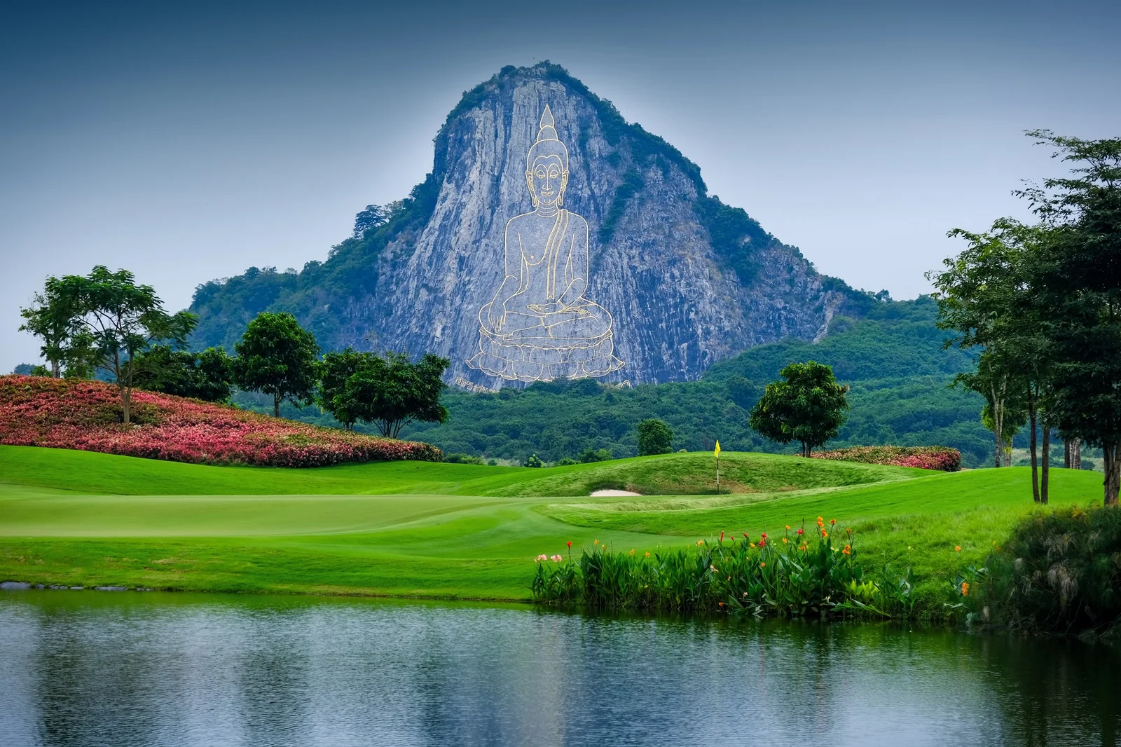 Chee Chan Golf Resort is an 18-hole championship course designed by David Dale of Golfplan as the Golf Course Architect, and landscape designed by GCH. The course is situated on 580 Rais (229 acres) of land in a stunning location next to the famed Chee Chan Mountain with the golden engraving of the Lord Buddha, Phra Phuttha Maha Wachira Uttamopat Satsada, which is considered the world’s largest Lord Buddha image depicted on the cliff and it can be seen from every hole of the golf course.